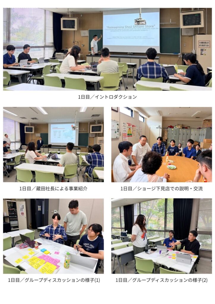 ショージ下見店でフィールドワークが実施されました。学生たちは、店内外の観察やスタッフへのヒアリングを通じて得た情報をもとに課題に取り組み、Problem(問題)、Needs(ニーズ)、Values(価値)の視点を往復しながら、仮説の言語化を行いました。議論の焦点は「下見店の持つ価値とは何か」「地域における新たな役割をどのように設計できるか」という問いに集約され、地域の生活リズム、多文化・多言語の視点を交えた多角的な発想が飛び交いました。